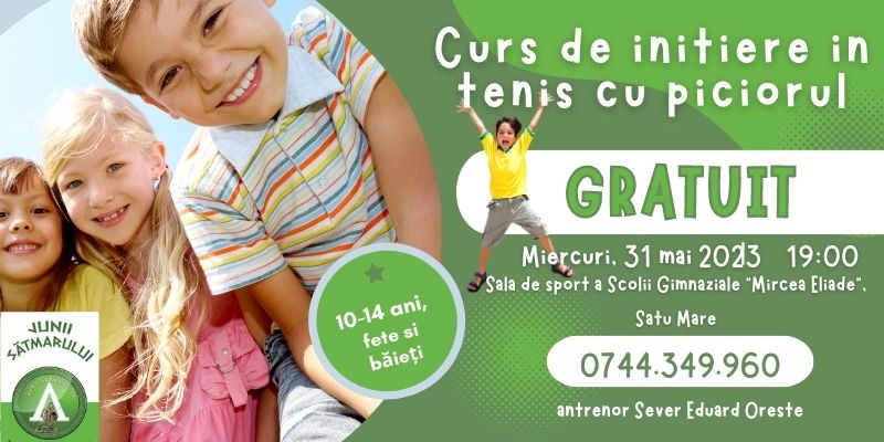 Miercuri, 31 mai 2023, orele 19:00, la Sala de Sport a Scolii Gimnaziale “Mircea Eliade” din Satu Mare, se va demara “Cursul de initiere în Tens cu Piciorul“, sub îndrumarea antrenorului Sever Eduard Oreste.